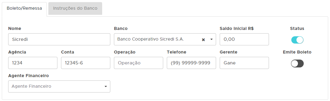 - Agência: Deve conter 4 dígitos sem hífen.