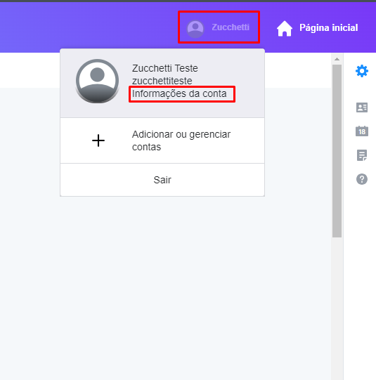 1. Depois de acessar sua conta, no canto superior direito clique no seu Perfil e vá em Informações da Conta;