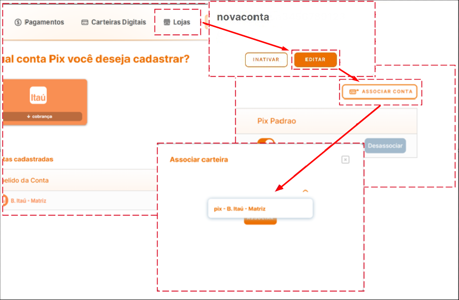 Após este cadastro da conta, é necessário associar a mesma na carteira.