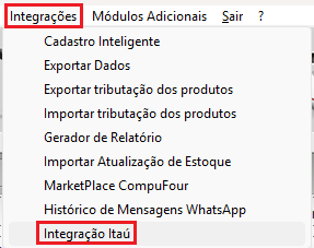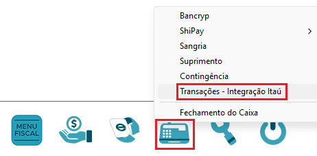 Acesse o menu de Caixa, e vá na opção de Transações - Integração Itaú