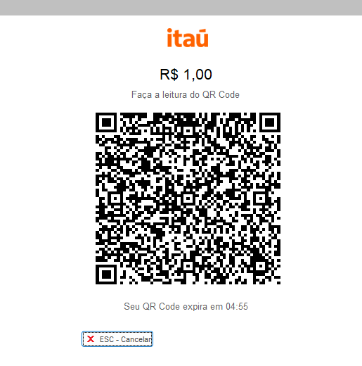 O QR Code tem validade de 5 minutos, caso o pagamento não ocorra neste intervalo, o QR Code expirará e será necessário gerar um novo.