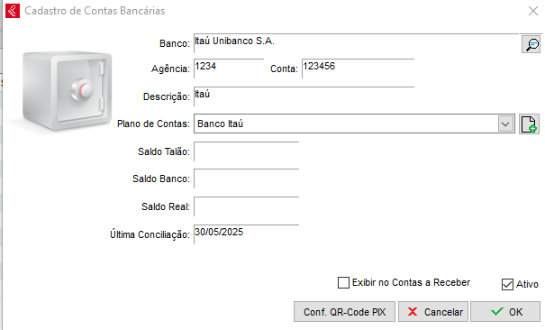 Crie um novo banco com os dados referente a sua conta bancário do Banco Itaú.