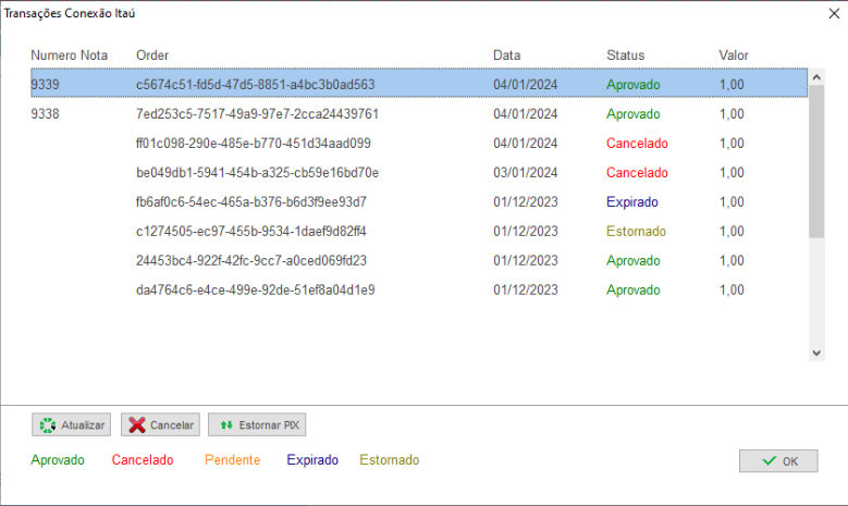 - Atualizar: desta forma ele consultará o status da transação selecionada;