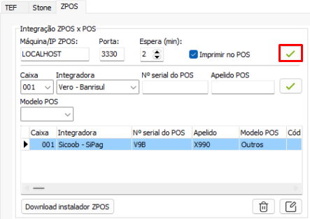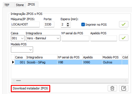Também é necessário baixar o instalador do ZPOS no computador local. Para realizar a instalação, clique em Download Instalador ZPOS