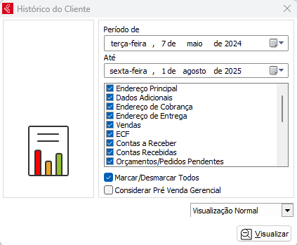 Gera todos os dados cadastrais do cliente selecionado, todas as notas, produtos vendidos, contas a receber, etc..