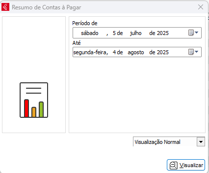 Este relatório mostrará as contas a pagar, contas pagas e contas atrasadas, de acordo com o período selecionado.