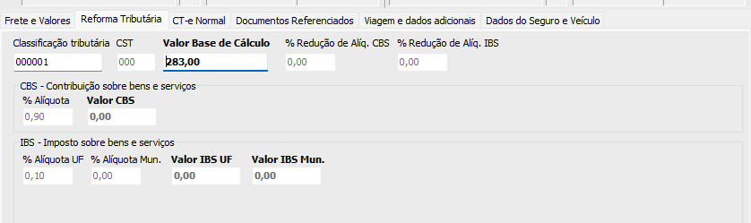 Outras informações, como o percentual de redução da alíquota do CBS e IBS, o tipo de documento em que deve ser considerado e a opção correspondente à tributação monofásica, deverão ser selecionadas manualmente.