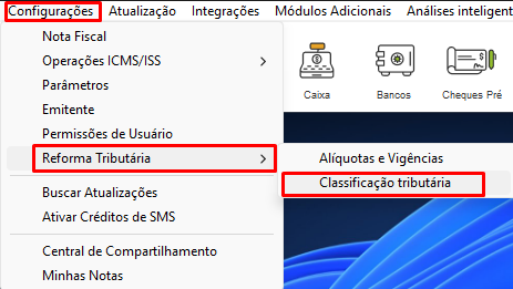 Para acessar, clique nas Configurações > Reforma Tributária > Classificação Tributária