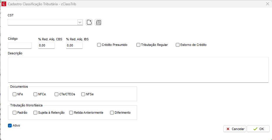 Permite o cadastro e edição de CSTs para CBS e IBS, com base na tabela padrão da SEFAZ.