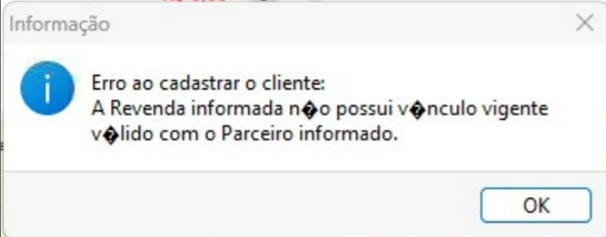 A Revenda informada não possui vínculo vigente válido com o Parceiro informado -