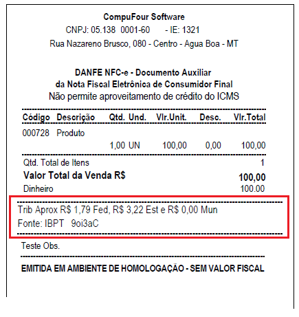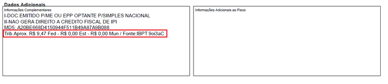 Conforme regulamentação da Lei nº 12.741, de 8 de dezembro de 2012, novo decreto nº 8.264, de 5 de junho de 2014 esses valores também serão destacados separadamente por Valores Aproximados: Federal Estadual e Municipal.