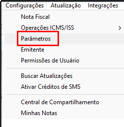 - Acesse o Menu Configurações / Parâmetros;