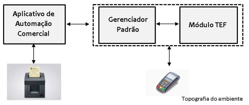 O Aplicativo de Automação Comercial é responsável por executar todas as tarefas pertinentes à venda, incluindo a impressão do cupom fiscal e do cupom TEF. Ao término da venda, se a forma de pagamento escolhida for cartão, a Automação Comercial acionará o Gerenciador Padrão (por meio de gravação de um arquivo) que, por sua vez, acionará o TEF. A troca de informações entre os sistemas é feita por meio de troca de mensagens padrão.