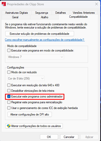 Configuração no Windows 10 - Executar como Administrador no Clipp Pro