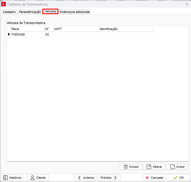 Ao cadastrar uma Transportadora, será possível cadastrar os Veículos da mesma.