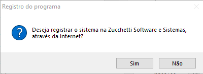 Clique em OK novamente e será apresentada uma mensagem solicitando se deseja registrar o sistema através da internet. Clique no botão Sim.