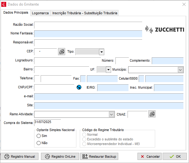 OBS: Caso efetuar qualquer alteração nos dados do emitente, é necessário efetuar o registro online novamente para gravar as informações.