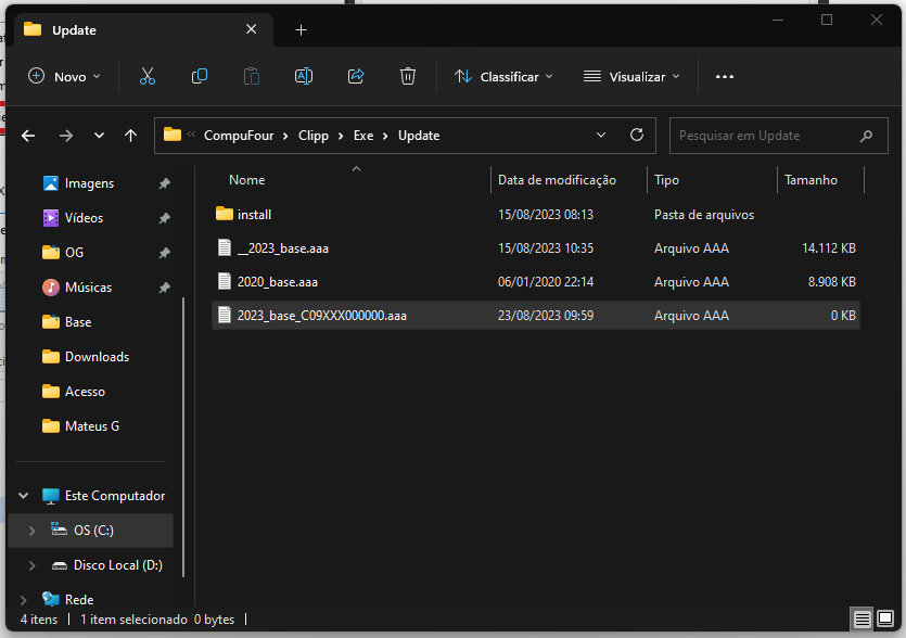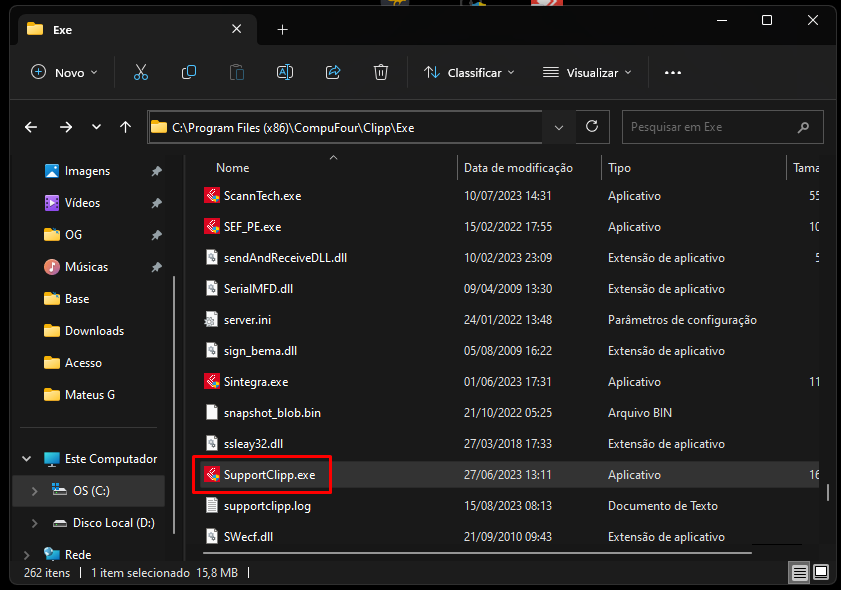 6. Agora retorne para a pasta anterior, pasta Exe (C:\Arquivos de Programas\Compufour\Clipp\Exe);