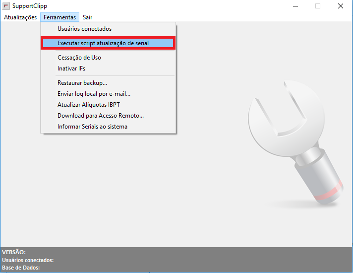9. Em seguida, clique no menu Ferramentas / Executar script atualização serial. Clique em Sim na tela de confirmação que abrir em seguida.