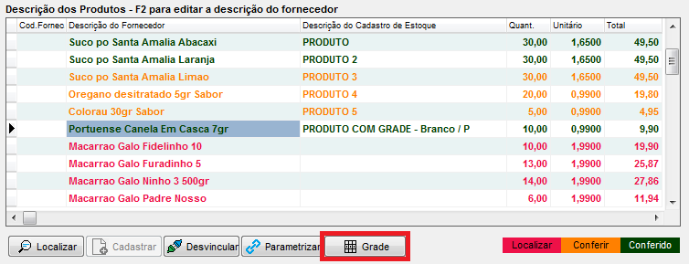 Caso os produtos adquiridos sejam controlados por grade e tenham sido agrupados em um único item na nota do fornecedor, clique aqui.