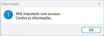 Após confirmar a mensagem, os dados que foram visualizados anteriormente serão importados para a nota fiscal de compra. Lembrando que na nota se o CFOP principal for diferente dos itens será apresentada a mensagem "CFOP da nota diferente dos itens. Deseja atribuir o CFOP para todos os itens lançados".