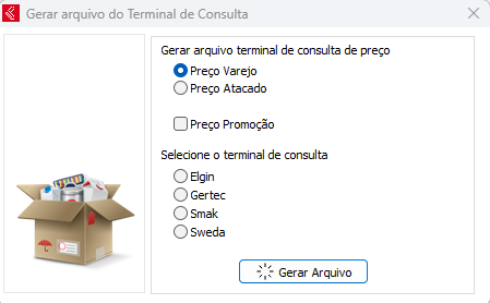 Geração de arquivos para o Terminal de Consulta de Preços: Elgin, Gertec, Smak e