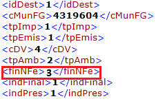 Poderão ocorrer situações onde a empresa necessita emitir uma Nota Fiscal de Ajuste. A principal característica de uma Nota de Ajuste é a finalidade, ou seja, no arquivo XML gerado será apresentada a tag: “FinNFe=3”. Conforme exemplo abaixo: