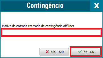 Após estar ciente ao que refere-se a mensagem, clique em Sim. Ao confirmar o início da Contingência, haverá o registro de que a mesma foi ativada: