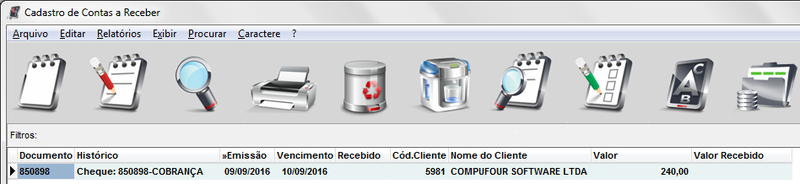 - Não Depositados/Não Recebidos: exibe todos os cheques vencidos e ainda não recebidos;