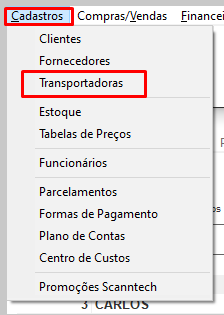No seu Clipp Pro, acesse o menu Cadastros > Transportadoras