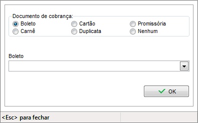 Em alguns casos poderá ser solicitado o Documento de Cobrança, conforme imagem abaixo: