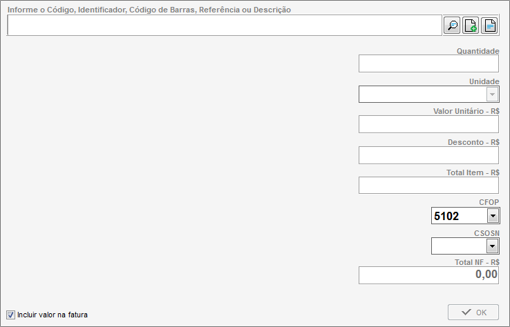 Após ter lançado o cliente e verificado o horário na nota, devem ser lançados os itens na nota fiscal, nesse momento haverão três opções: