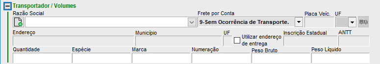 Na área de Transportador / Volumes é possível informar os dados da transportadora e dos volumes transportados.