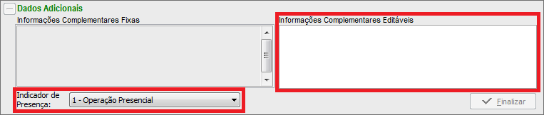 Para concluir, deve ser informado também o campo Indicador de Presença, que serve para identificar a presença do comprador no estabelecimento comercial no momento da operação.