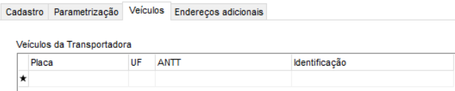 Lembrando que é possível agregar os veículos à transportadora, para que apareçam os dados de ANTT na nota, acesse o cadastro do fornecedor e clique na aba de veículos, conforme imagem abaixo, importante ressaltar que só é possível informar placa e UF do veículo se for operação interna, se for operação interestadual, deve emitir o MDF-e.