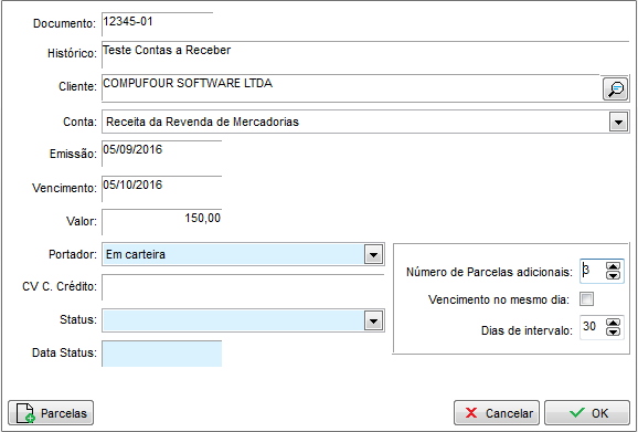 Além do cadastro manual, lembramos que para todas as vendas realizadas a prazo serão criados os respectivos registros das parcelas automaticamente.