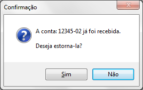 Para facilitar o lançamento do Estorno clique duas vezes sobre a conta já recebida, será solicitado se deseja Estornar a conta, não necessitando realizar o processo citado acima.