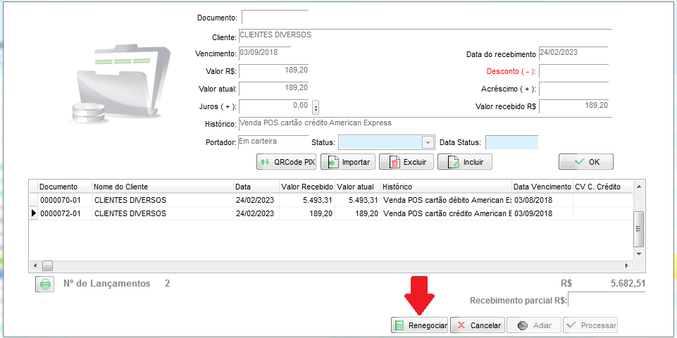 Será criado um registro no contas a receber com o histórico da renegociação e o valor efetivo;
