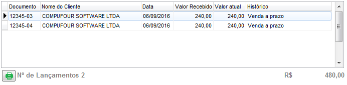 Após marcar as contas desejadas, clique no menu Editar / Receber contas. Todas as contas selecionadas serão listadas, e abaixo poderá conferir o valor total das mesmas.