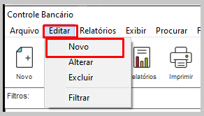 Feito isso, clique no menu Editar / Novo ou clique diretamente no botão Novo.