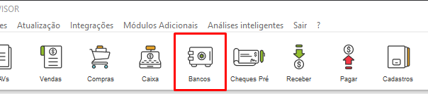 Para cadastrar uma conta bancária, acesse o módulo de Bancos;
