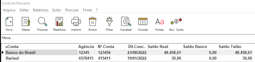 Todos os bancos cadastrados ficarão listados no Controle Bancário:
