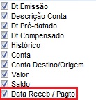 É possível escolher a coluna data do recebimento/pagamento onde demosntrará a data de cada ocasião. Clique no botão exibir colunas