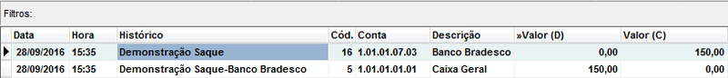 No exemplo acima foi efetuado o Saque da conta Banco Bradesco para o Caixa Geral:
