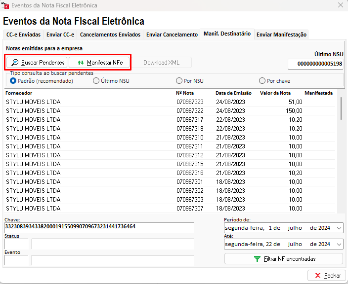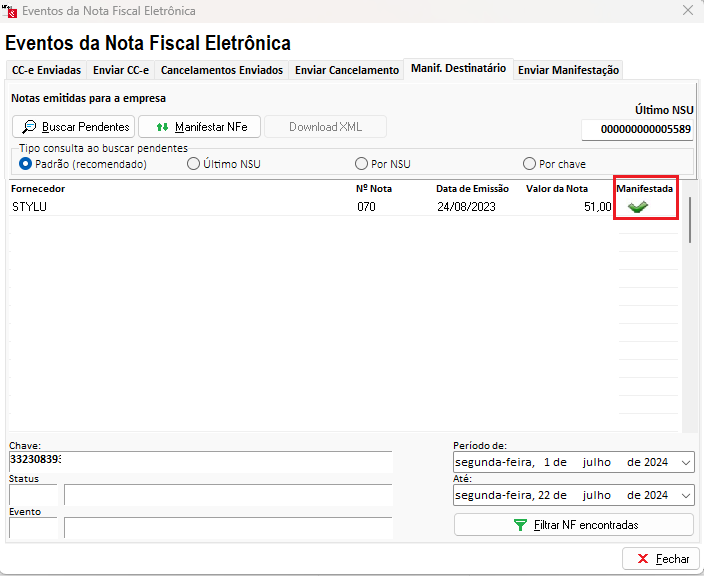 DICA: Para verificar o Evento de Manifestação do Destinatário, acesse o Portal da NFe e efetue a consulta a partir da Chave de Acesso da NFe.