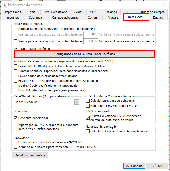 Acessando a Configuração da Nota Fiscal Eletrônica