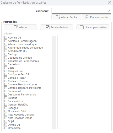 - Acesso Completo: O usuário terá acesso total ao módulo, terá permissão de inclusão, exclusão e alteração.