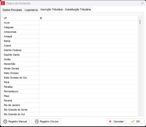 Nesta aba deverá informar a Inscrição Estadual – Substituição Tributária. A empresa ao praticar operações interestaduais com outros estados contendo mercadorias com substituição tributária é obrigada a recolher o ICMS-ST (antecipado) em cada operação. Para evitar todo o trabalho de preencher a GNRE, pagar no banco, pegar uma via, anexar à nota fiscal e liberar a mercadoria para o envio, a empresa abre uma inscrição de substituto tributário nos estados onde ela pratica estas operações, assim fica dispensada deste recolhimento, porém no final do mês preenche a GIA-ST e recolhe todo o imposto devido, agilizando assim o trabalho.
