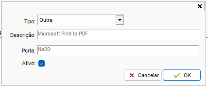 - Ativo: Define se a impressora está ativa ou não para uso no sistema.
