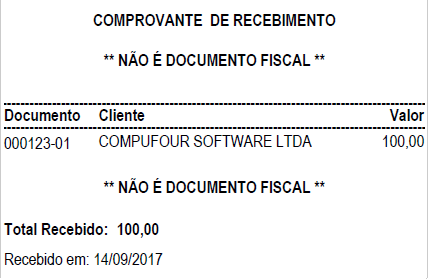 Ao clicar em "Sim", será impresso o recibo: